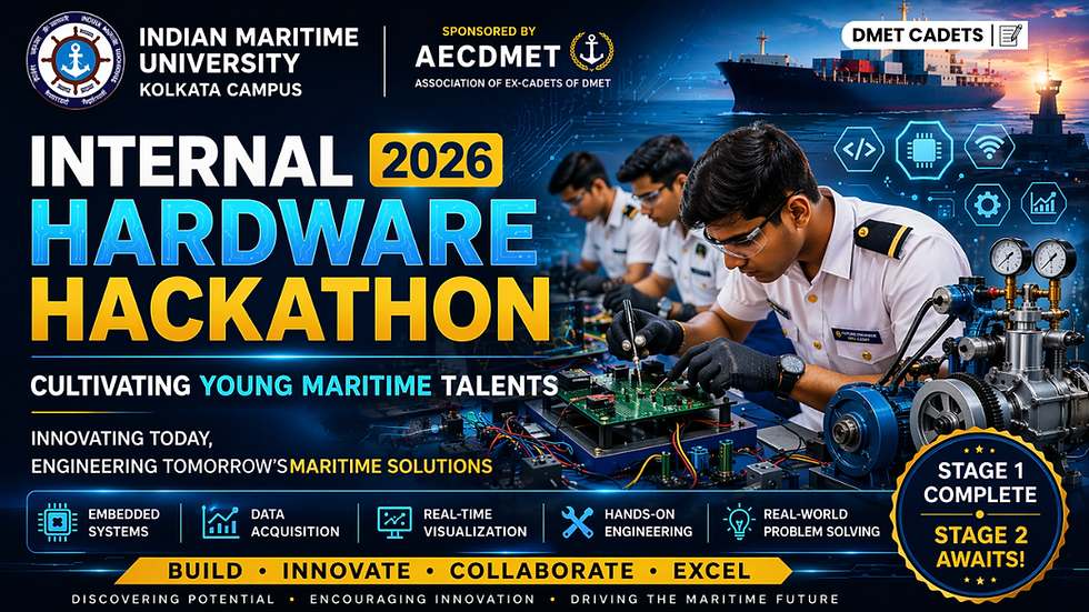 The Internal Hardware Hackathon 2026 at the Indian Maritime University (IMU), Kolkata Campus, marked a significant step toward nurturing the next generation of maritime engineers. Designed to promote hands-on learning, embedded systems, and real-world problem-solving, the event successfully concluded its Stage 1 screening phase between 7th and 14th February 2026, setting a high benchmark for technical innovation among cadets.